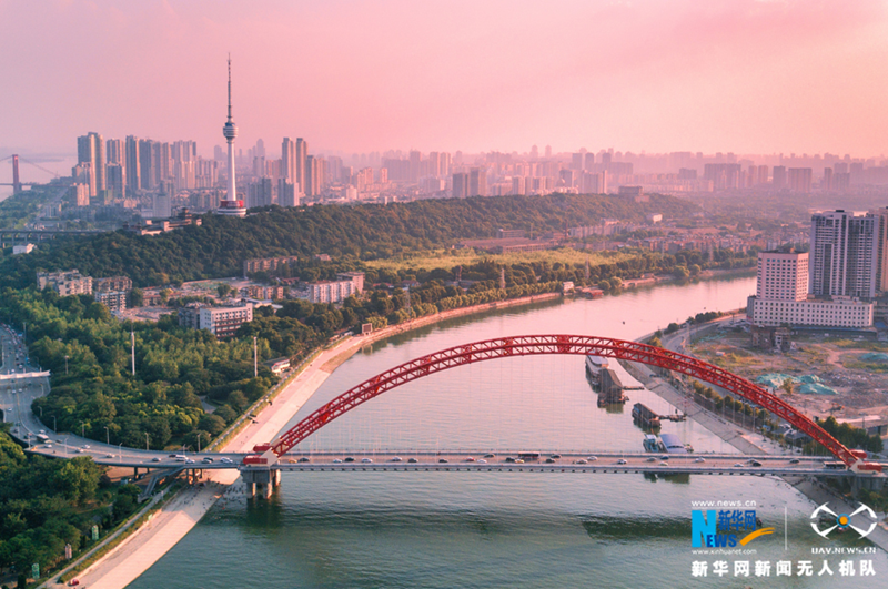 武汉晴川桥是武汉市建造的第四座城区汉江公路桥,又称江汉三桥,因红色桥拱,亦称"彩虹桥"。晴川桥位于汉口集家嘴与汉阳南岸嘴之间,紧邻汉江入长江口处,两端通过四条匝道与汉口沿河大道和汉阳汉南路相接。晴川桥以其优美的曲线造型、鲜红的色彩和优越的地理位置成为为江城武汉的一道靓丽景观。