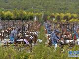 9月12日,呈坎古村村民在晒场上用各类农作物拼出图案。 近日,安徽省黄山市呈坎古村村民利用晴好天气晾晒农作物,在古村晒场上描绘出一幅丰收晒秋图。 新华社发(施亚磊 摄)