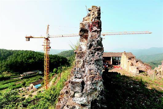 图为:正在修复的回龙观位于武当山浩瀚坡上,是武当山古建筑群“九宫八观”之一。