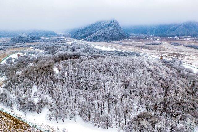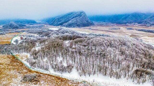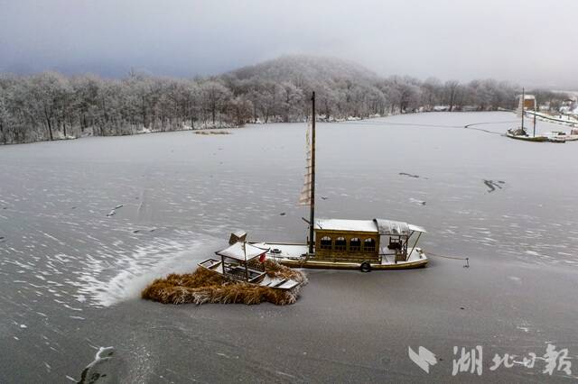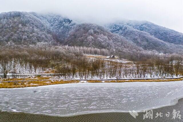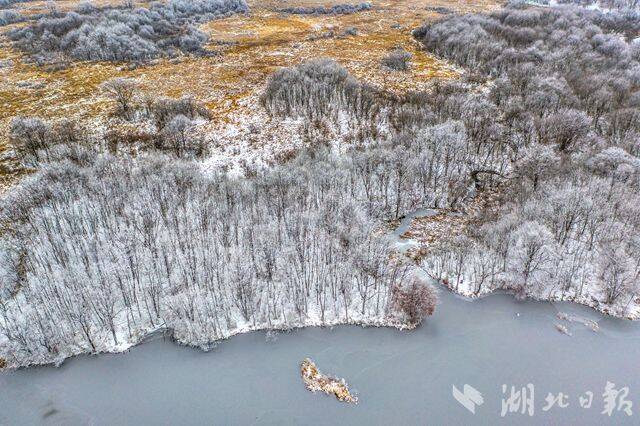 12月8日,雪后的神农架大九湖一派纯美景象,靠岸的湖水全部结冰,湖边树林如梦如幻的雾凇景观让人流连忘返。雾凇俗称树挂,是在严寒季节里,空气中过于饱和的水气遇冷凝华而成,是非常难得的自然奇观。(湖北日报全媒记者刘曙松摄)