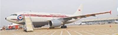 加拿大 双发喷气式运输机 机头两侧印有加拿大空军机徽。这是一个蓝色圆环里面镶有一片红色枫叶图案的标志。加拿大号称“枫叶之国”,因而加拿大人将枫叶图案嵌进了空军标志中。